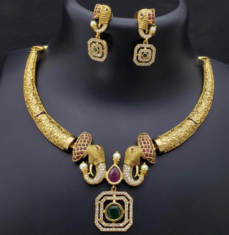 Elegant Navaratna AD Contemporary Necklace set